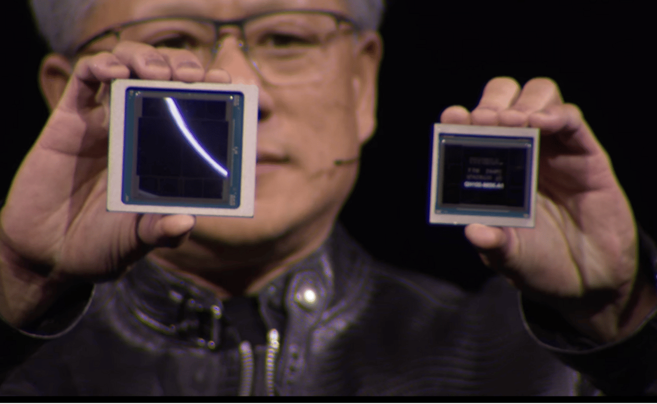 Last year’s unveil of the Nvidia's Blackwell chip (left) compared to the older H100 Hopper.
