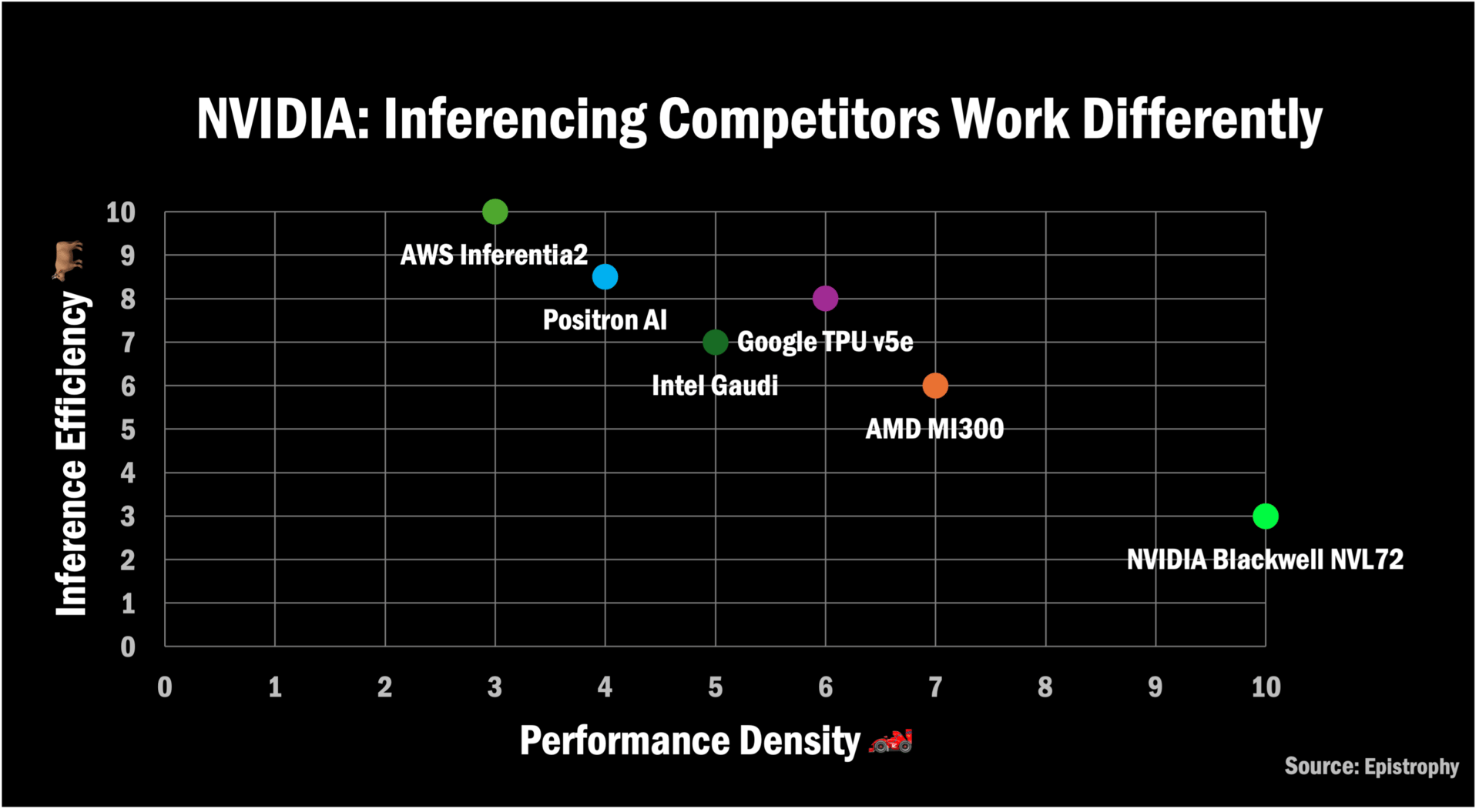 Positron AI (Atlas) | Startup inference accelerator | Higher tokens per watt vs. H200; inference-first design; FPGA prototyping accelerates time-to-market | Early stage; ecosystem still forming |
