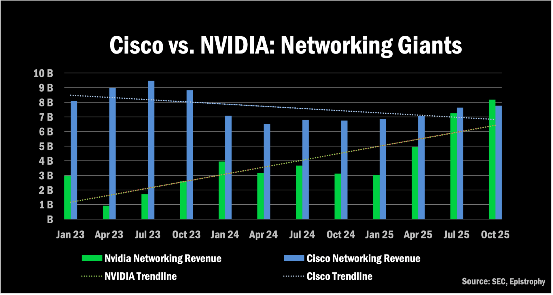 NVIDIA’s Data Center Networking business is now larger than Cisco’s