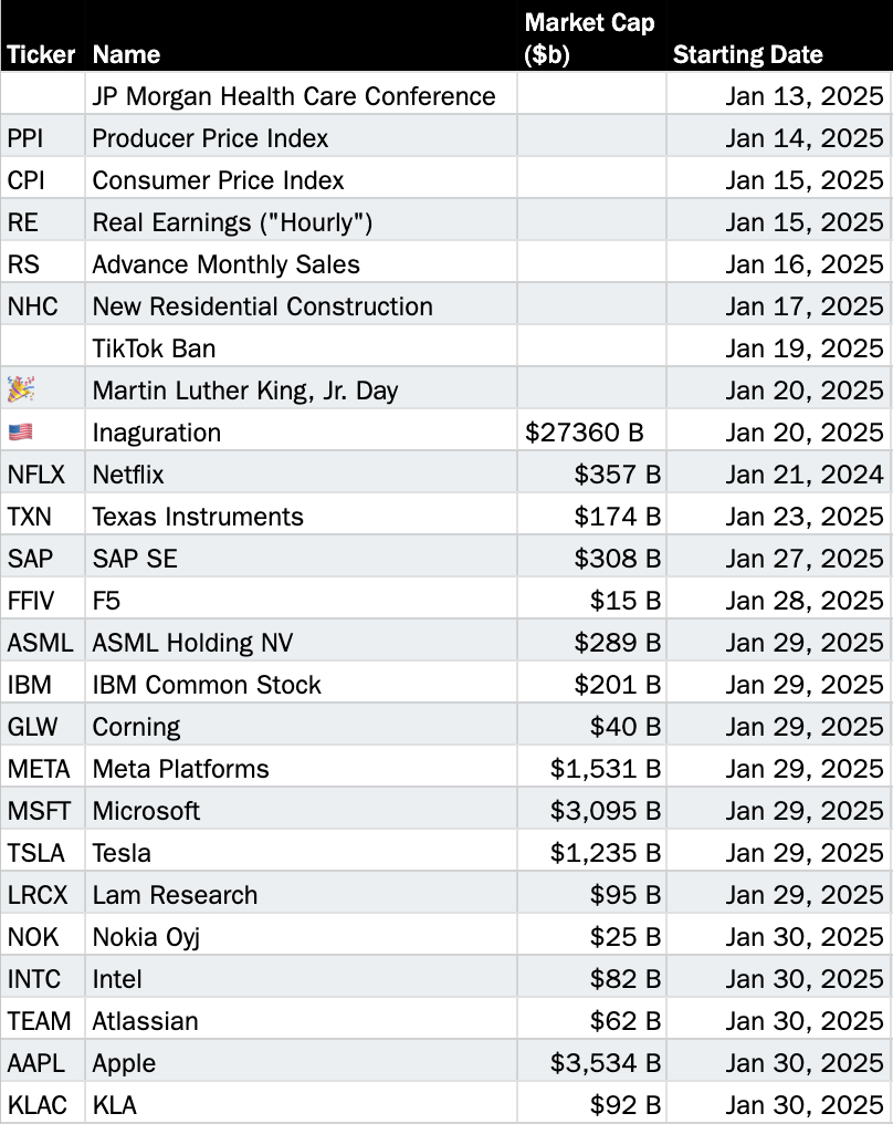 Post-CES, we’re gearing up for a rash of earnings in two weeks and lots of corporate news, to be sure, in the next week.