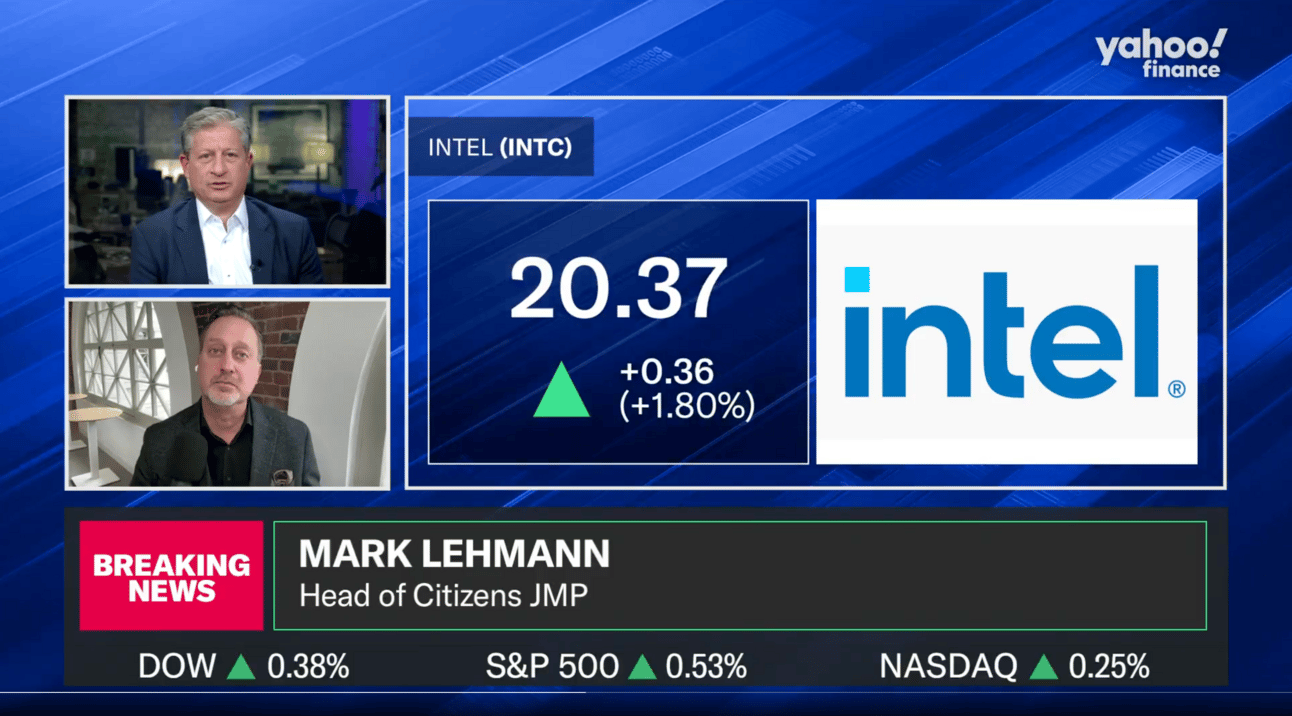 Yahoo Finance emailed shortly before my Thursday hit saying Citizens JMP CEO Mark Lehmann would be joining me in my hit. I’ve known that guys since he was a great software analyst! What a nice surprise. It led to a great conversation about Intel, a challenged company that finds itself shockingly adrift. (The segment was published under the headline “Why this strategist says Intel is making ‘a mess’” — sure to make me friends.)