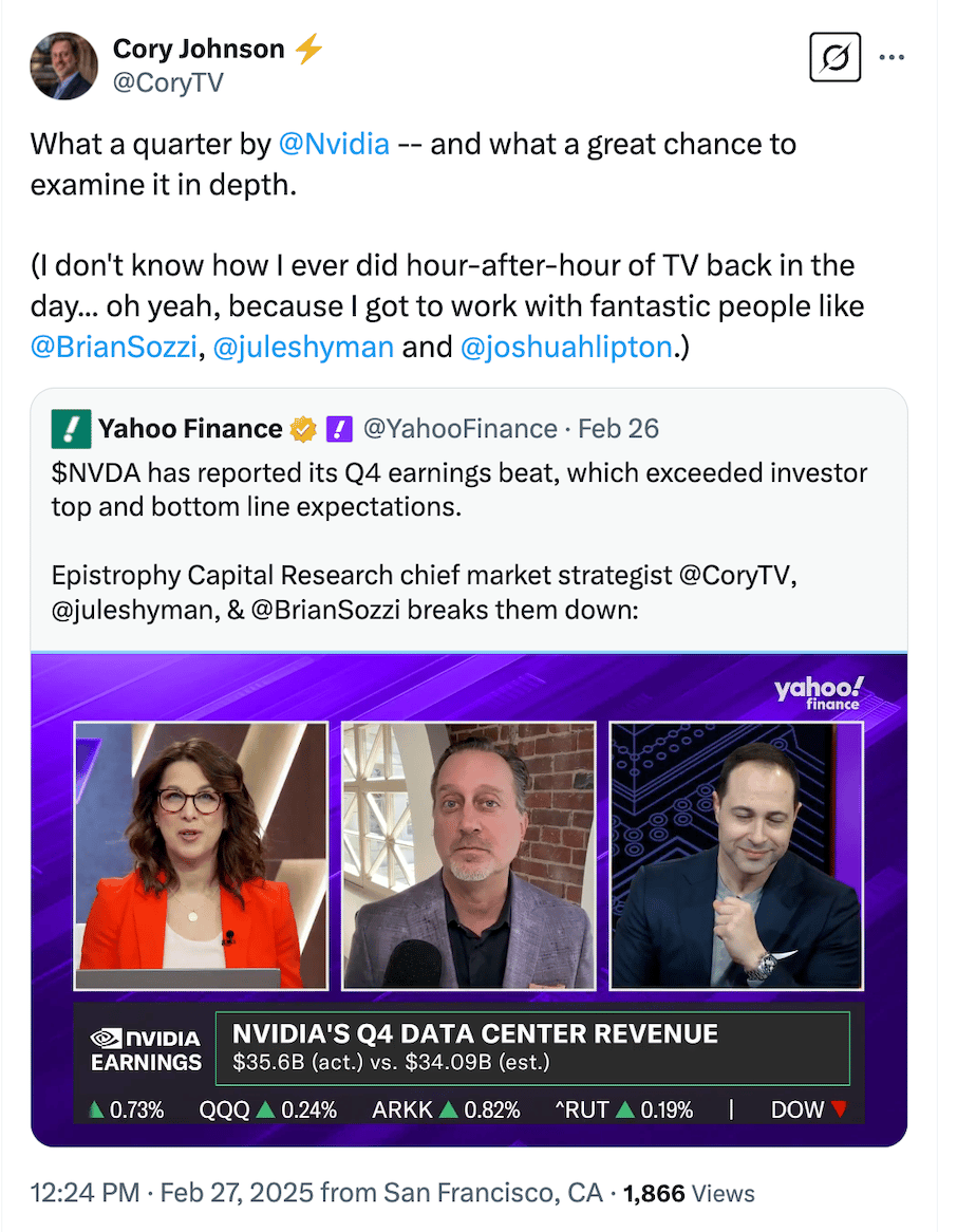 On Schwab Network, I joined Nicole Petallides for a sharp discussion on Nvidia’s earnings and the broader A.I. chip race. While Nvidia’s Blackwell GPU cycle is ramping fast, we also highlighted why Synopsys is poised to thrive in this era of custom silicon. Their role in enabling next-gen chip design makes them a critical player as A.I. reshapes the semiconductor landscape.