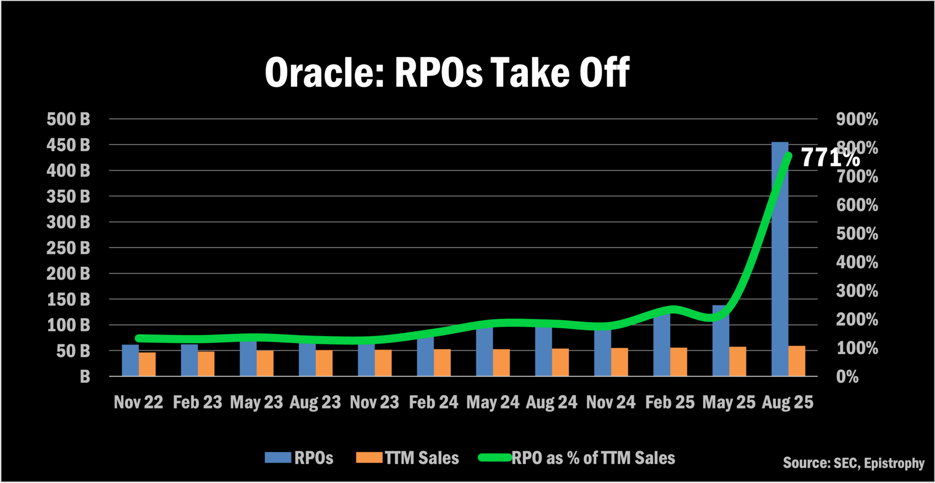 With fiscal year Q1 earnings, the company reported $455 billion in remaining performance obligations, a 771% increase from the previous quarter, $300 billion of which: a reported deal with OpenAI.