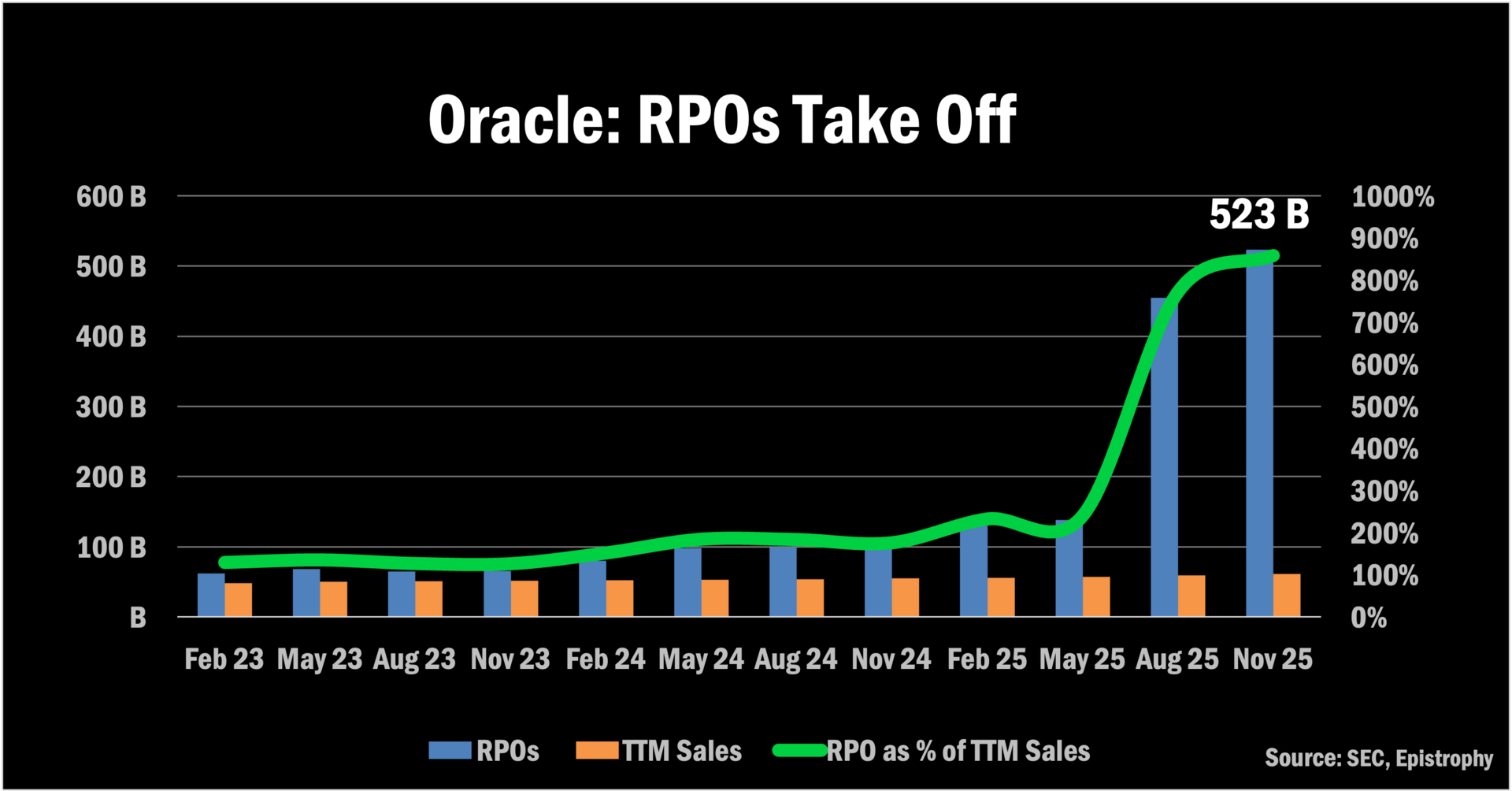 As of November 30, 2025, Oracle reported $523.3 billion in RPO, up from $97.3 billion a year earlier. During the quarter, RPO increased by $68 billion, driven by contracts signed with Meta, NVIDIA and others. This should be seen as nothing but good news. Surely every other big AI provider, including Amazon Web Services (AMZN: NASDAQ), Google Cloud (GOOG: NASDAQ) and Microsoft Azure (MSFT: NASDAQ) wer all after those gigs. But they failed to land them.
