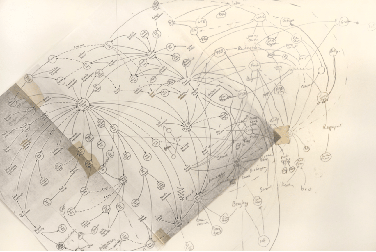 Money is made in the dark. In our age of offshore leaks and financial scandals, Mark Lombardi’s hand-drawn networks remind us that understanding complex systems requires human insight. His pencil revealed what journalists couldn’t explain and computers could not see.
